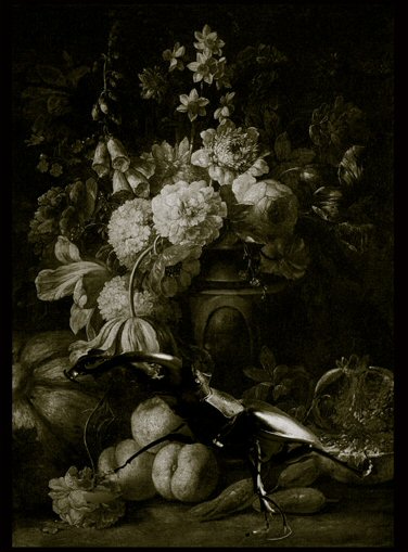 Montage avec peinture de Blain de Fontenay 1653-1715 et photo de coléoptère